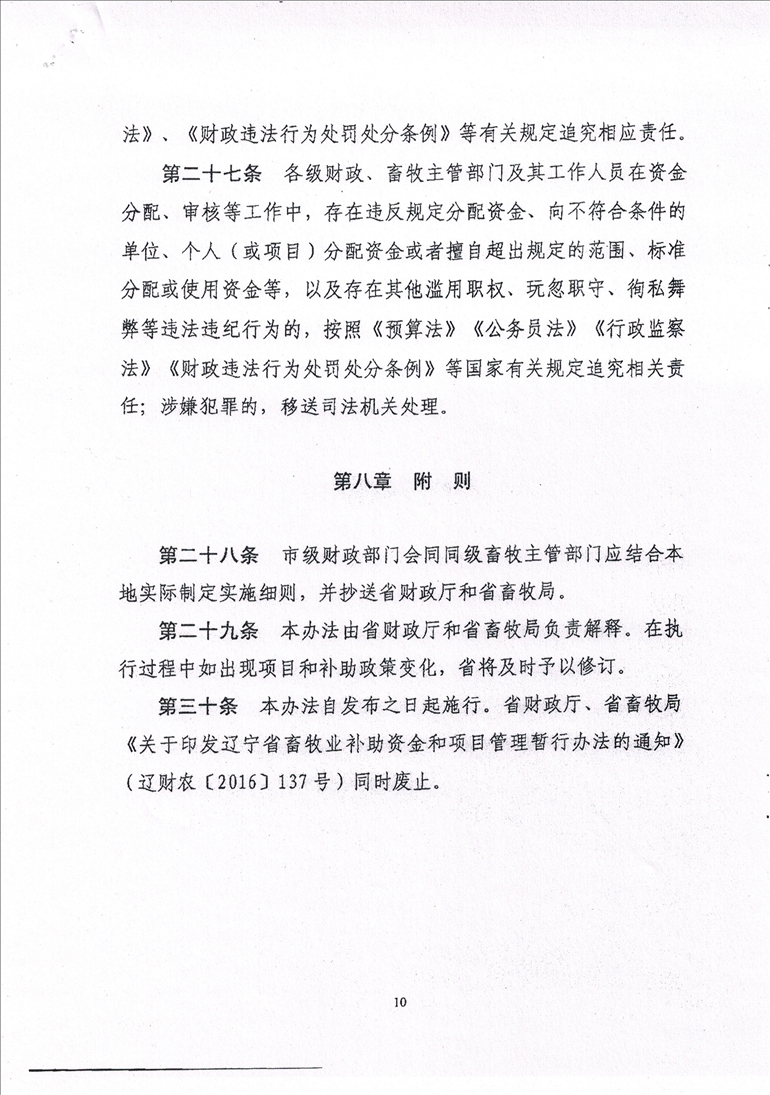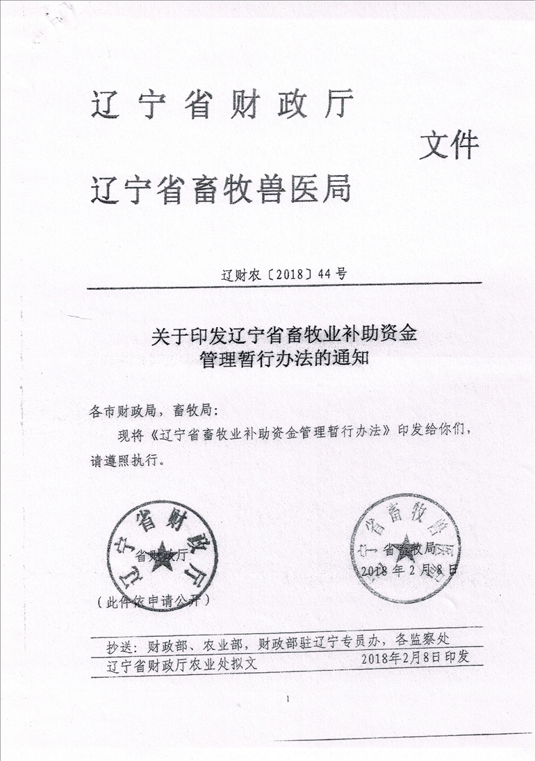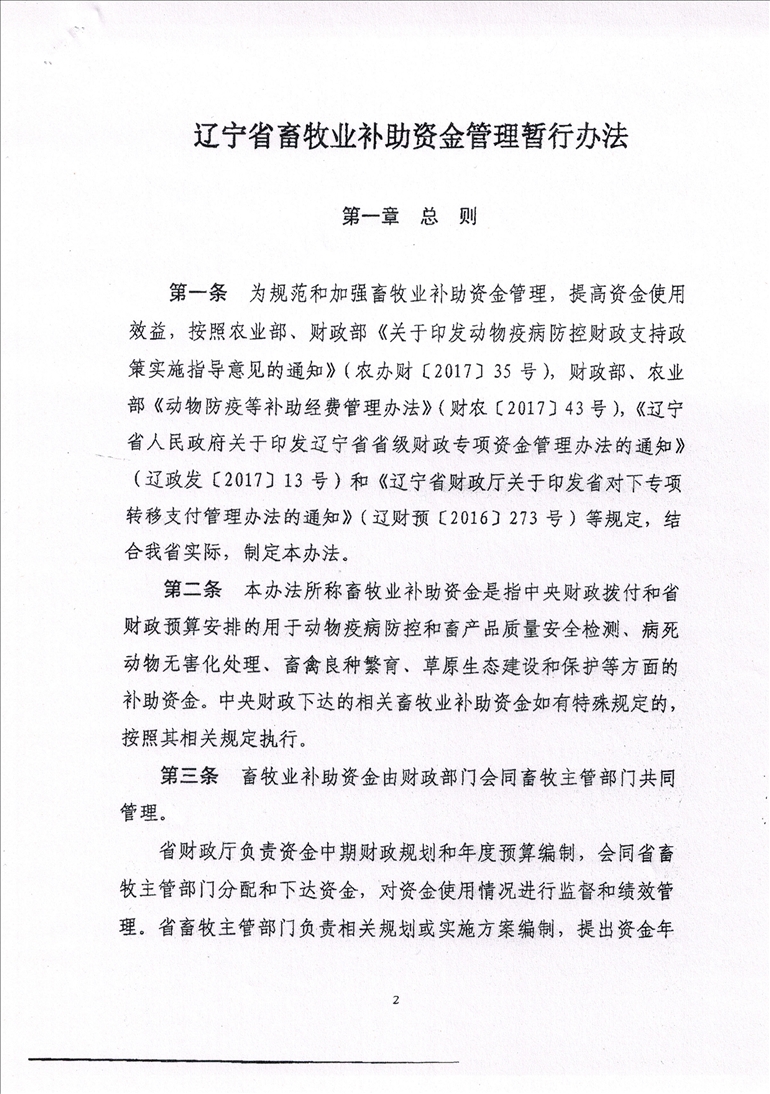 关于印发辽宁省畜牧业补助资金管理再行办法的通知