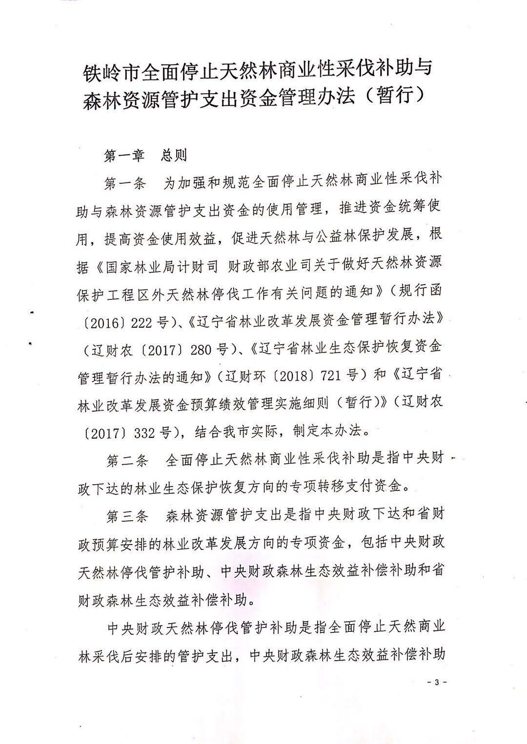 关于印发《铁岭市全面停止天然林商业性采伐补助与森林资源管护支出资金管理办法(暂行)》的通知