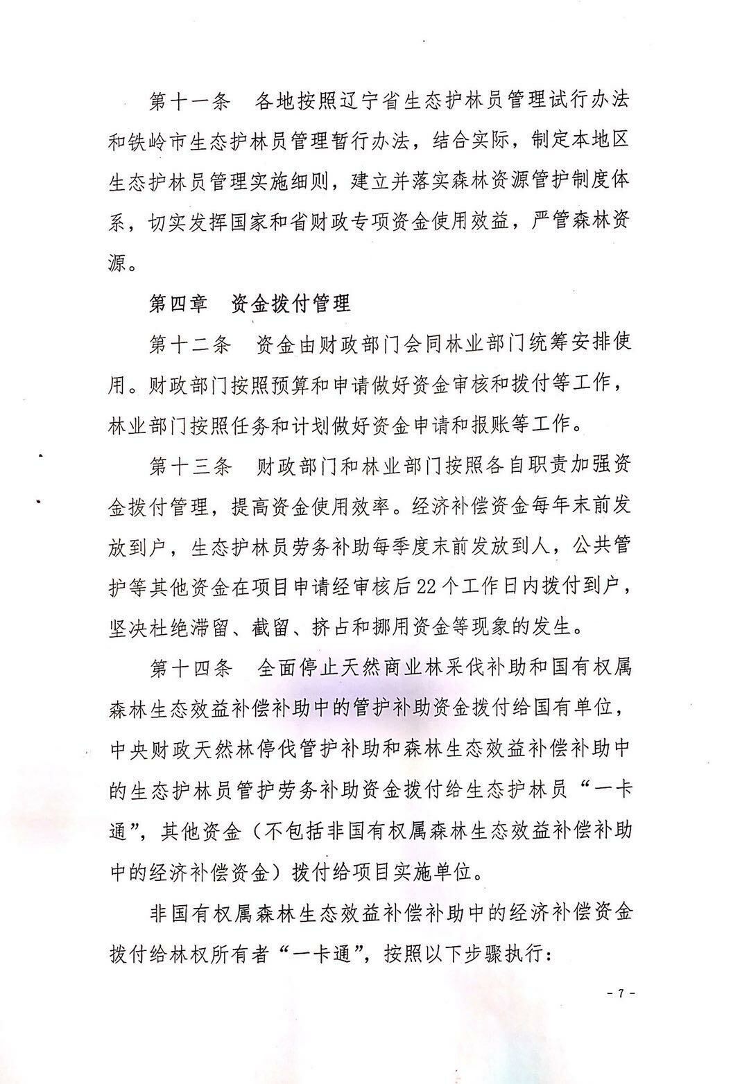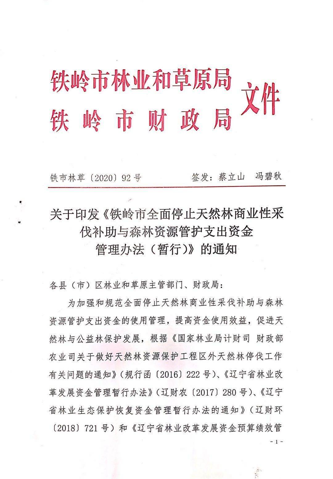 关于印发《铁岭市全面停止天然林商业性采伐补助与森林资源管护支出资金管理办法(暂行)》的通知
