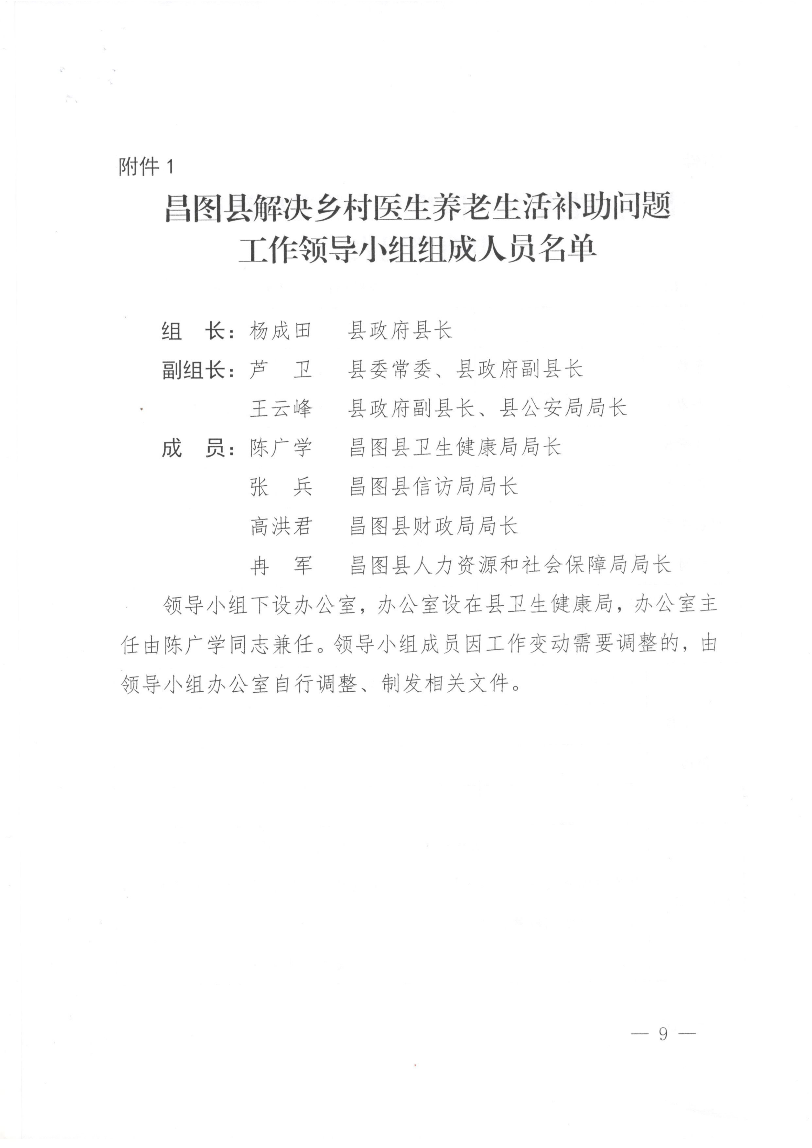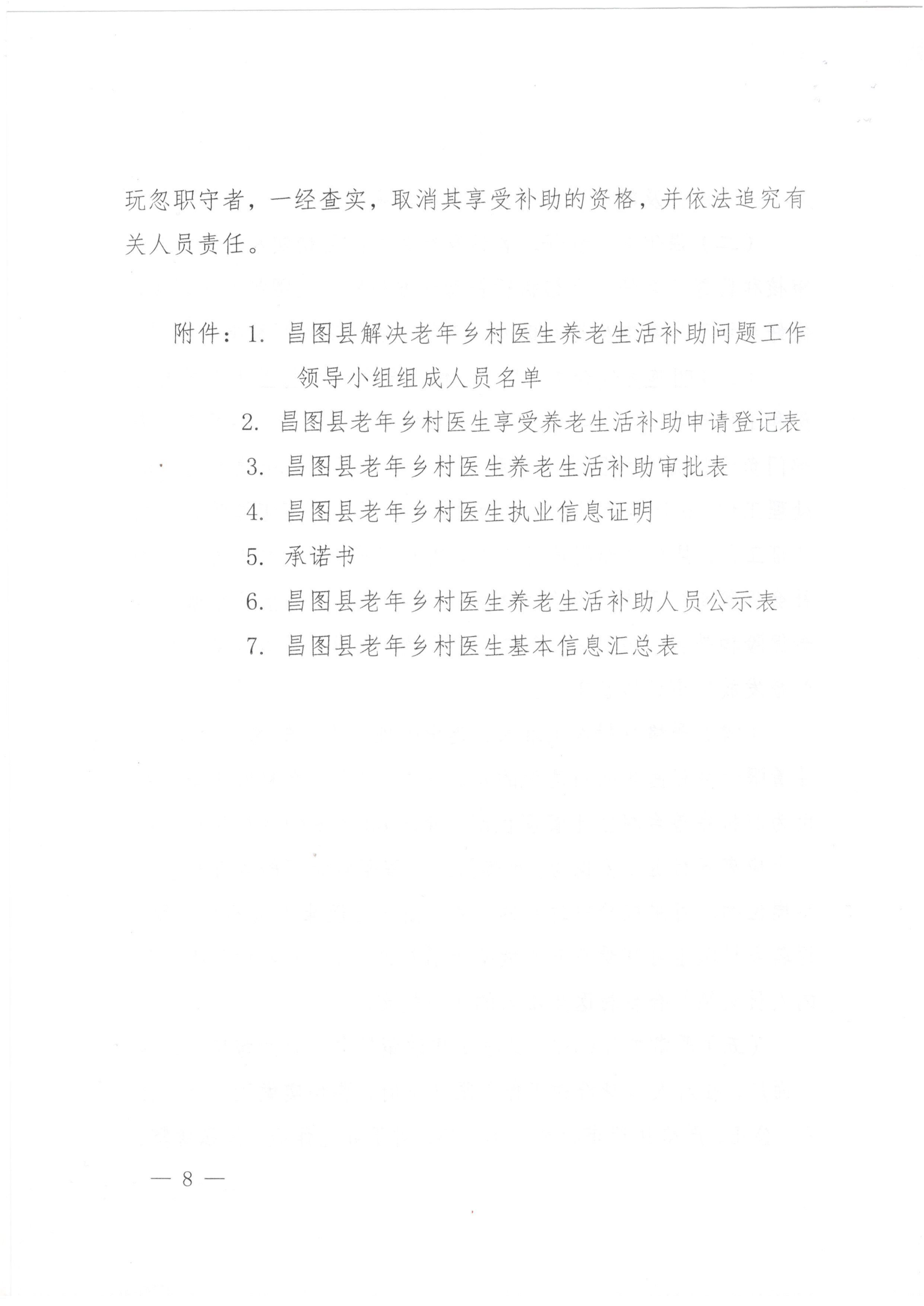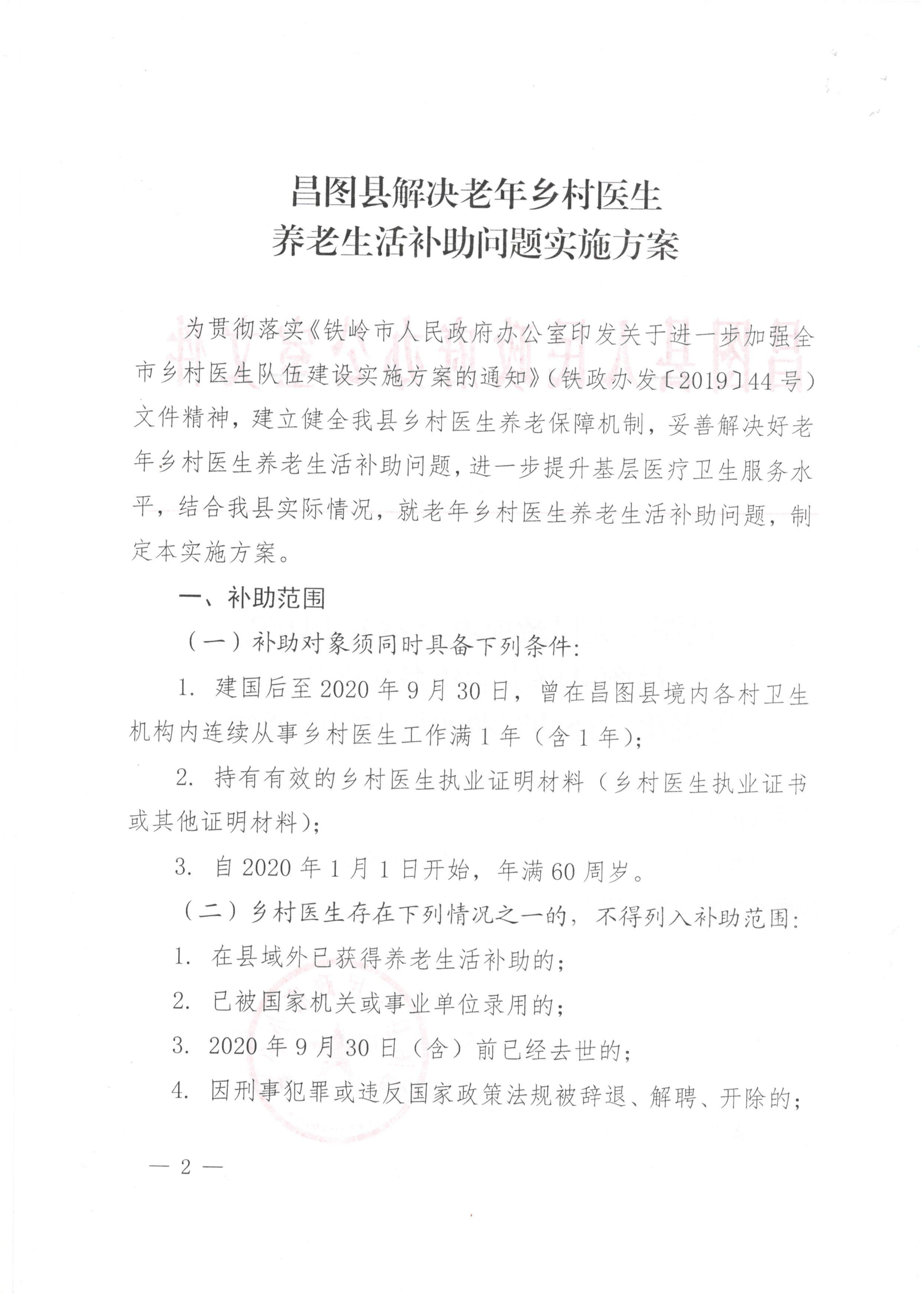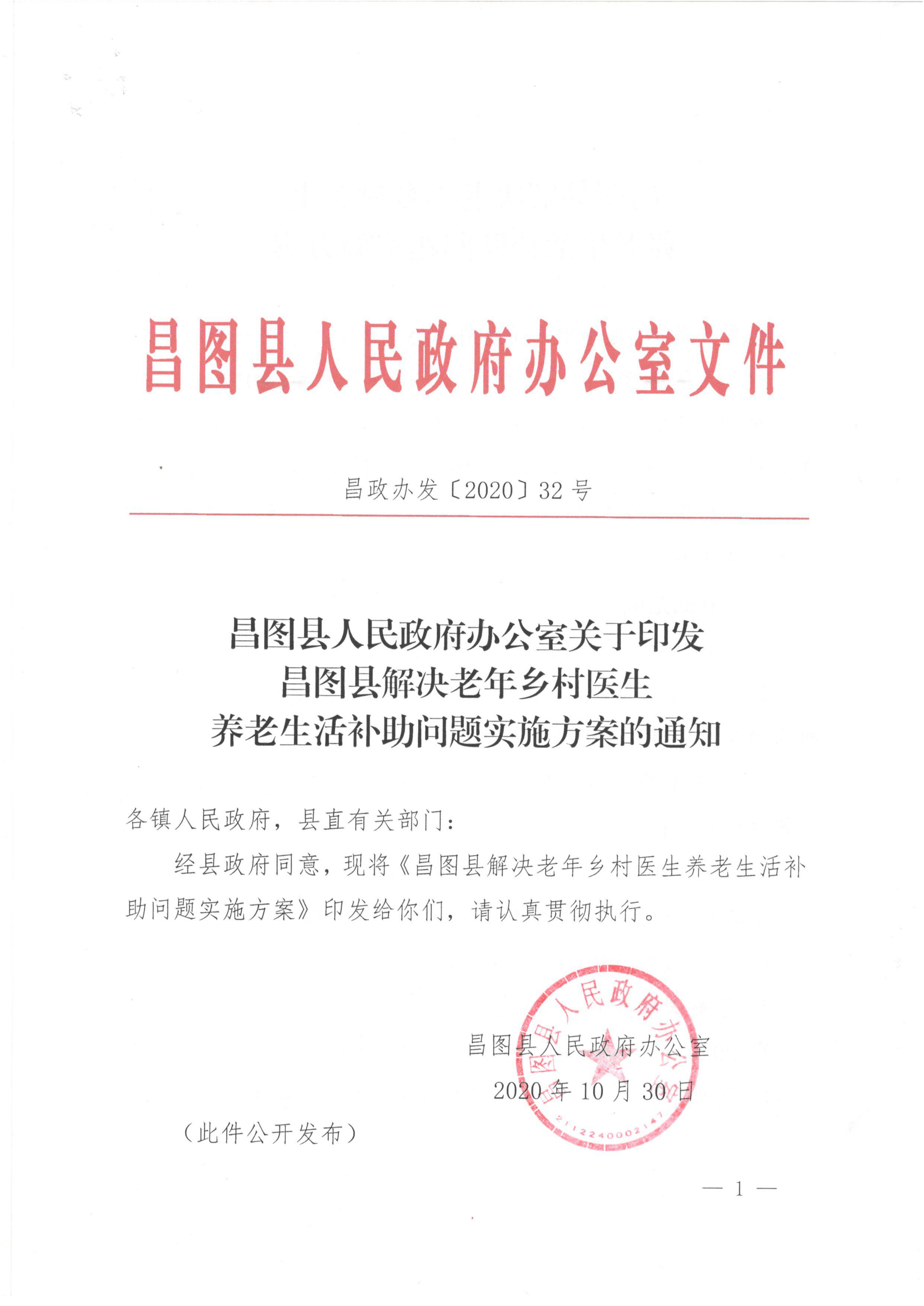 昌图县人民政府办公室关于印发昌图县解决老年乡村医生养老生活补助问题实施方案的通知