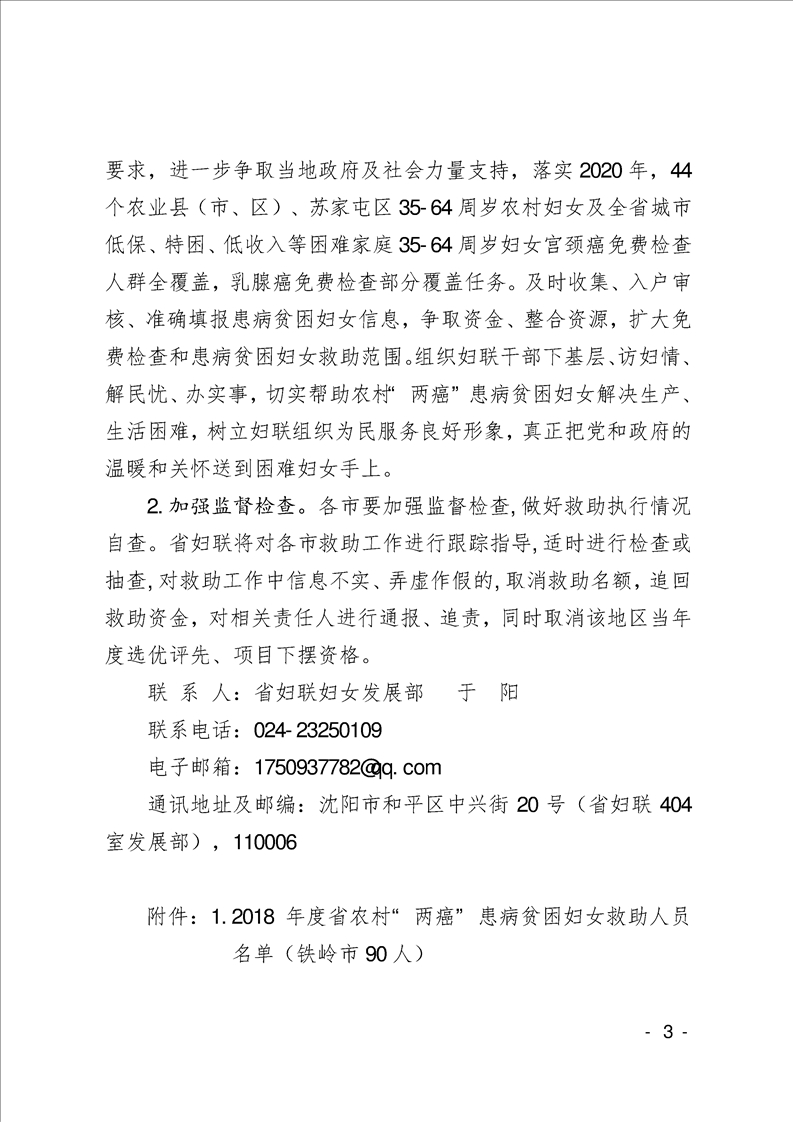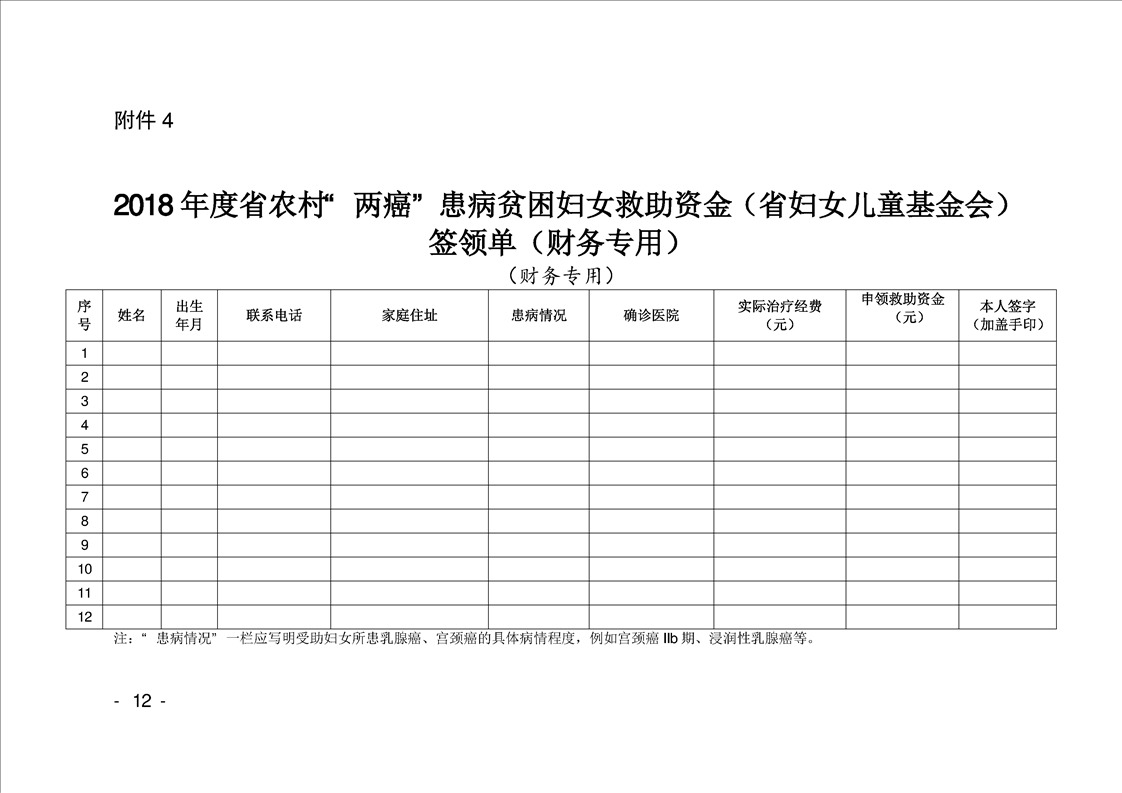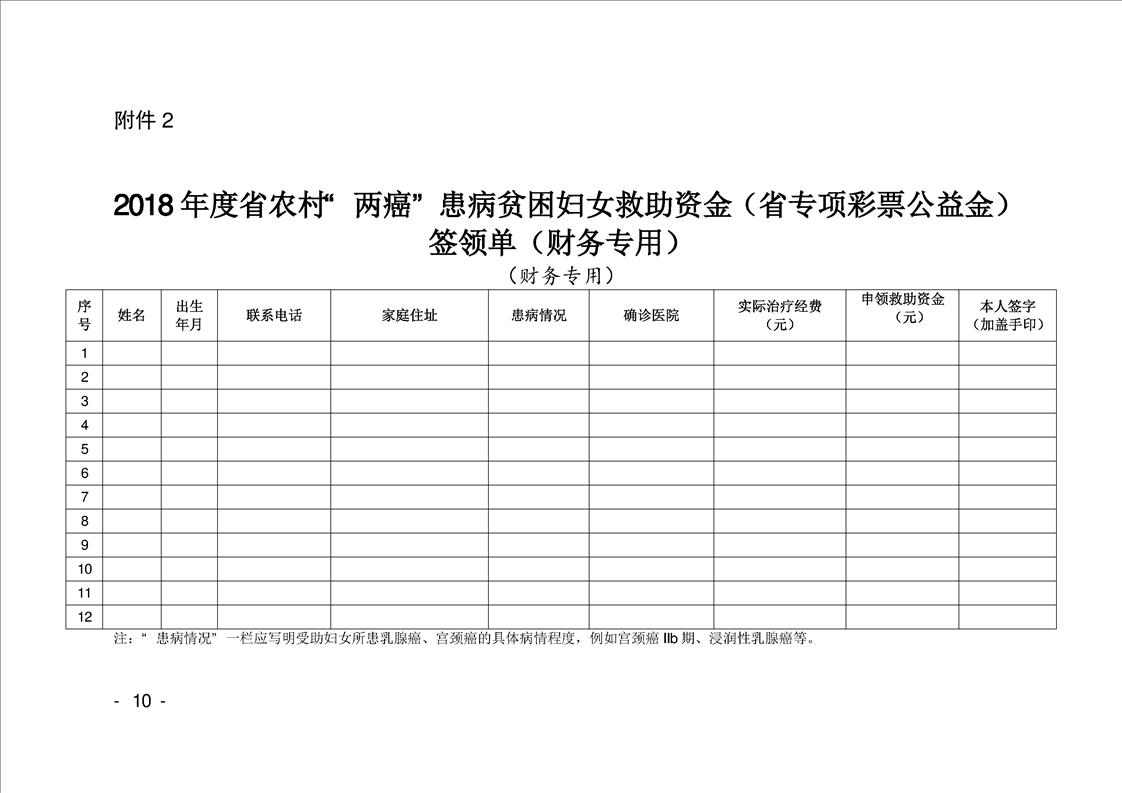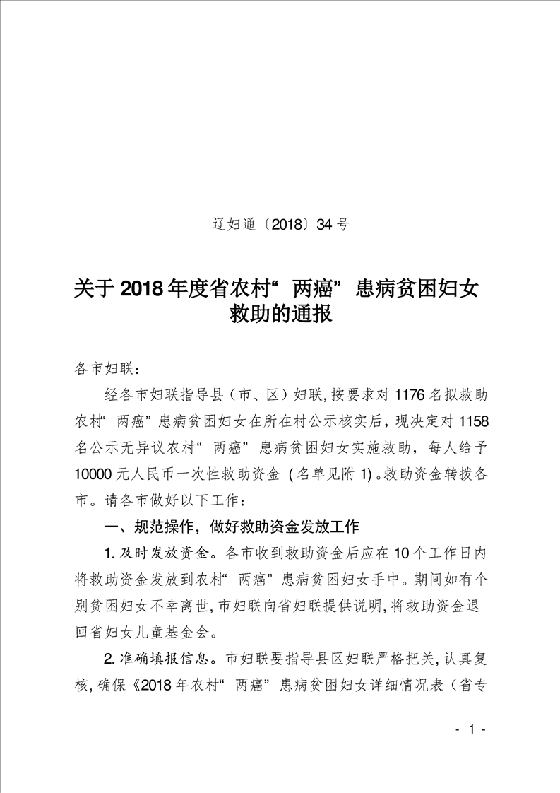 关于2018年度省农村“两癌”患病贫困妇女救助的通报