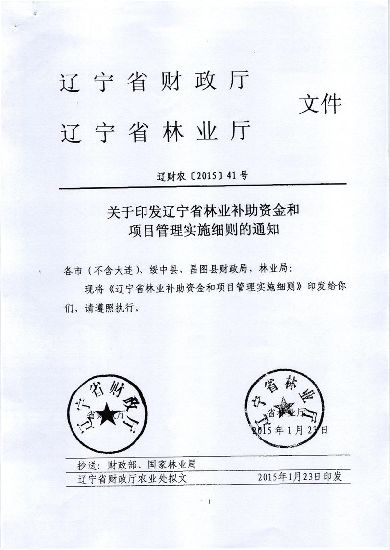 发布单位:  辽宁省财政厅 辽宁省林业厅