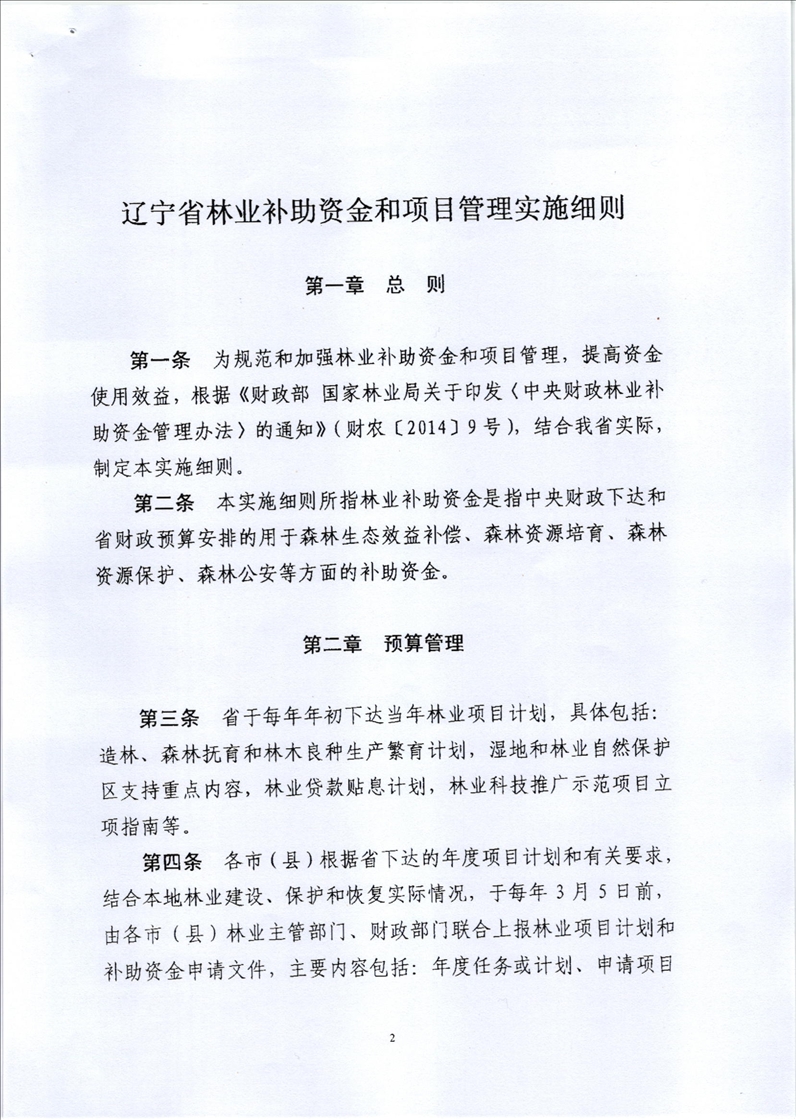 关于印发辽宁省林业补助资金和项目管理实施细则的通知
